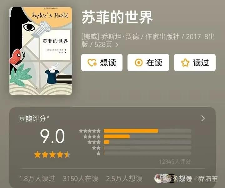 本书以小说的形式,通过一名哲学导师向一个叫苏菲的女孩传授哲学知识的经过,揭示了西方哲学发展的历程。由前苏格拉底时代到萨特,以及亚里士多德、笛卡儿、黑格尔等人的思想都通过作者生动的笔触跃然纸上,并配以当时的历史背景加以解释,引人入胜。评论家认为,对于那些从未读过哲学课程的人而言,此书是最为合适的入门书,而对于那些以往读过一些哲学而已忘得一干二净的人士,也可起到温故知新的作用。14岁的少女苏菲不断接到一些极不寻常的来信,世界像谜团一般在她眼前展开。在一位神秘导师的指引下,苏菲开始思索,她运用少女天生的悟性与后天知识,企图解开这些谜团。然而,事实真相远比她所想的更怪异、更离奇……