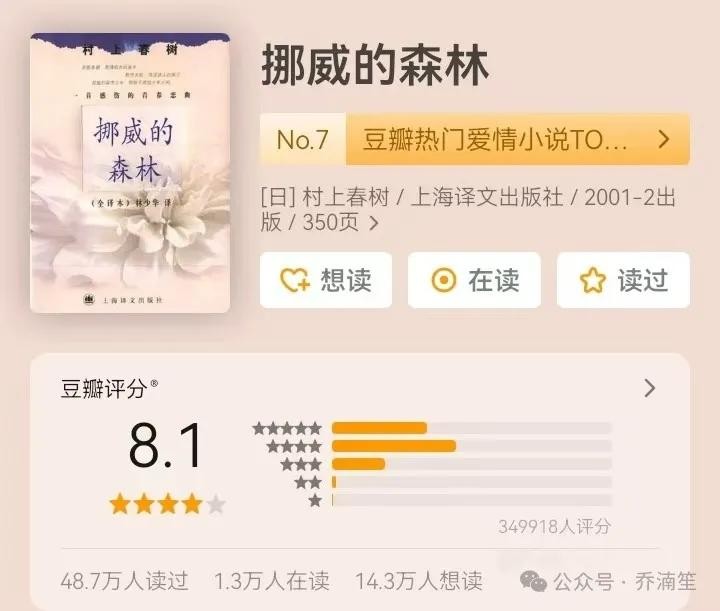 小说弥漫着村上特有的感伤和孤独情绪,俘获了万千少男少女多愁善感的心绪... ...