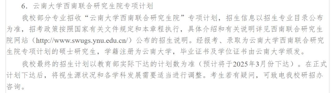 如根据《云南大学2025年硕士研究生招生章程》,经报考、录取为云南大学西南联合研究生院专项计划的硕士研究生,学籍注册为云南大学,毕业证书及学位证书由云南大学颁发。