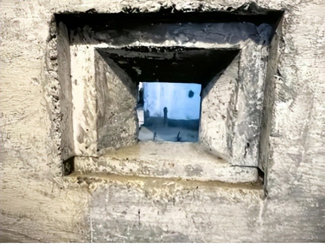 指挥室的墙上开有射击孔,可以看出混凝土墙的厚度,有30多厘米吧!