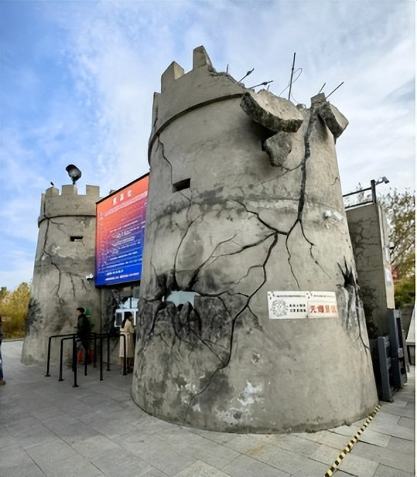 炮楼的一角坍塌了,下部也炸开了两个大窟窿,给人一种战争的震撼!