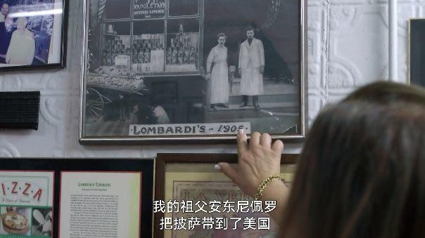 现在的经营者骄傲地展示着照片,说是自己的祖父把披萨带到了美国。