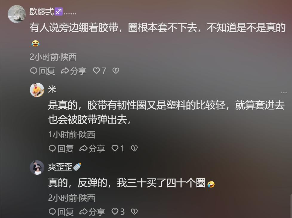 还有人网友称,这位摊主老板肯定是用了什么特殊手法,让圈根本就套不进去,纯属骗钱的把戏。