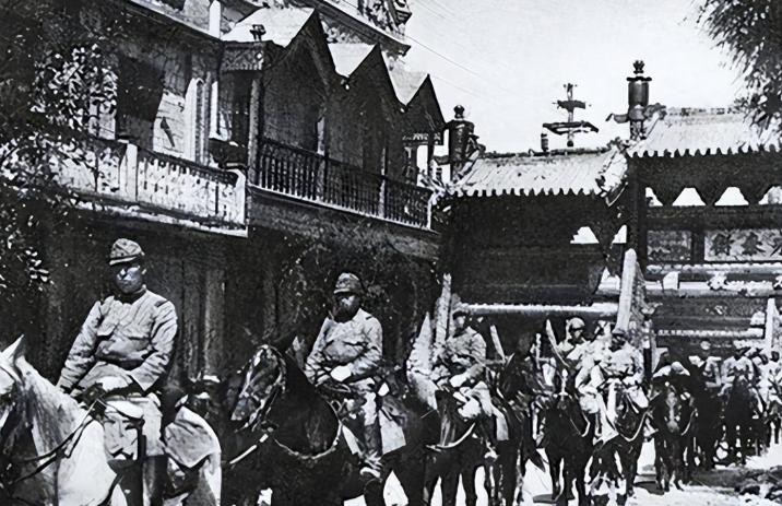 你看这组照片中,日本侵略军正骑着高头大马,洋洋得意地从一座古老的城门前经过,在侵略者的铁蹄下,这座城池的人民即将面临的,是失去人身自由、财产自由,甚至生命的悲惨命运。
