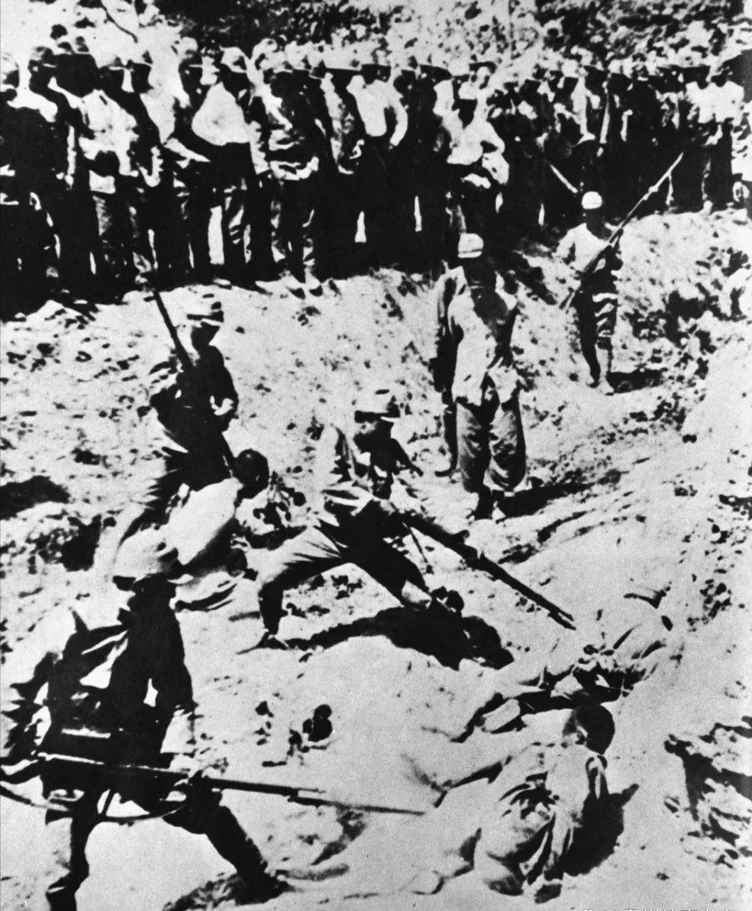 刽子手们挥舞刺刀将1500名我国同胞一一刺死