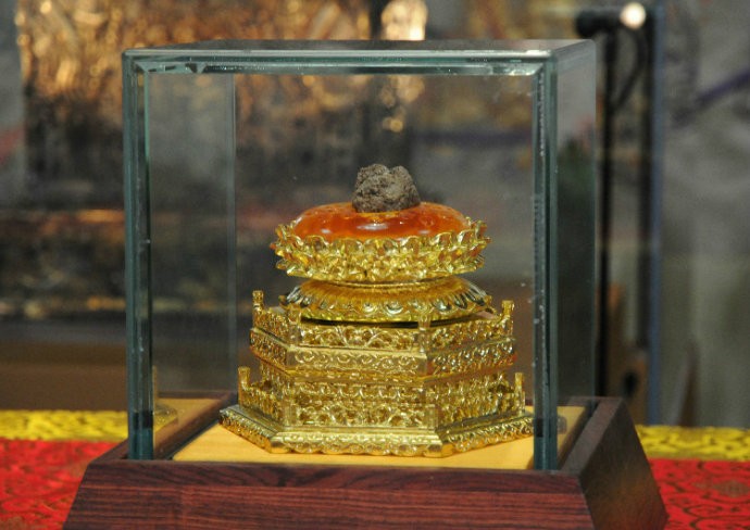 佛宫寺的佛牙舍利来头可不小,据说是佛教创始人释迦牟尼的灵牙遗骨!遗骨上的一颗颗像水晶一样的小珠子,便是舍利。