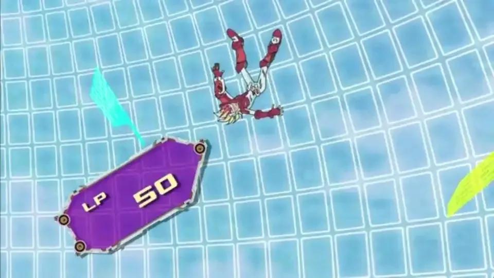 出自5DS不动游星和暗痣人鬼柳决斗时,本来要被地缚神击败。结果关键时刻他的D轮突然出了问题,翻车了,于是决斗中止。。。