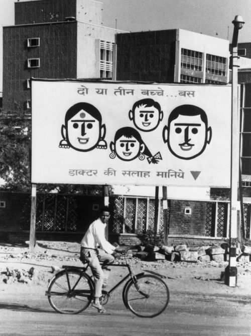 类似的分析,配合“大量贫困人口将带来革命”的冷战时代恐惧,促使欧美国家鼓励印度政府控制人口,加之“经济发展没有跑赢人口增长”的阴影在侧,被称作印度铁娘子的英迪拉·甘地终于在1975年到1977年推出了史上最严格的计划生育政策。