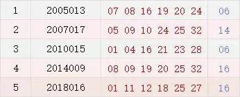 双色球014期历史同期号码汇总