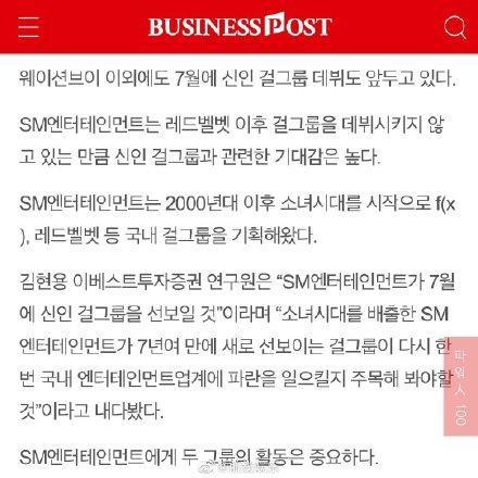 韩国SM娱乐有限公司(S.M.Entertainment)是韩国一间大型艺人企划和经纪公司,与JYP、YG齐名,同为韩国三大娱乐公司。最近韩娱报道,SM公司将在7月份推出新的女团。