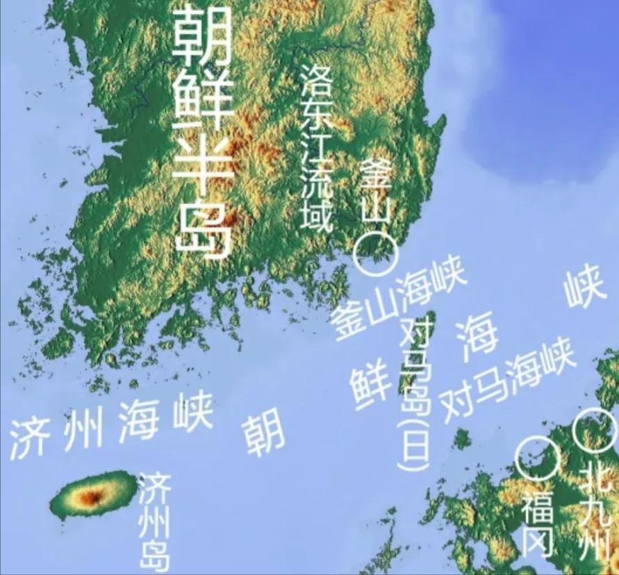 朝鲜半岛和日本九州岛一带存在多座岛屿,包括对马岛、济州岛、巨济岛、壹岐岛、福江岛等等。济州岛和巨济岛归属韩国,其他岛屿归属日本。