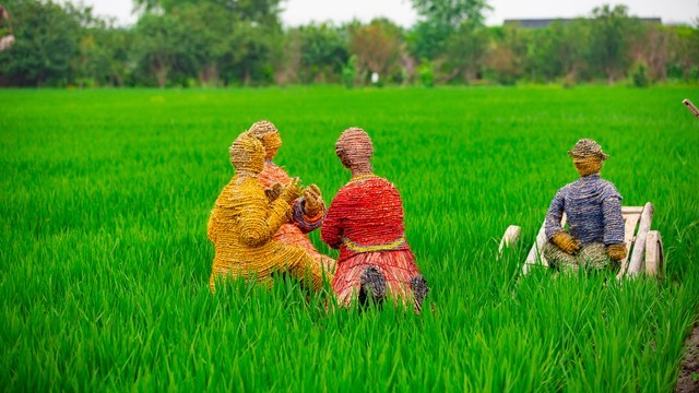 稻草人直挺挺地站在田间,
