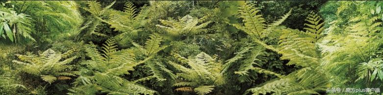 远古河源,恐龙牧场。一片片蕨类桫椤,再现恐龙时代食粮。蕨类桫椤锥单齿,世称植物活化石。状如扇,绿如柏。树龄四百万余年,株高叶长十余尺。