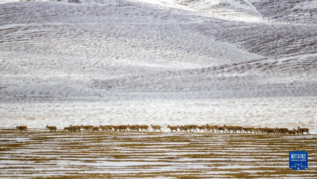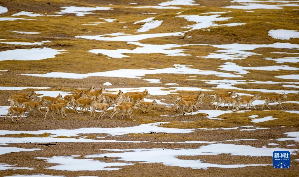 这是在羌塘国家级自然保护区那曲市双湖县区域内拍摄到的藏羚羊(4月18日摄) 。