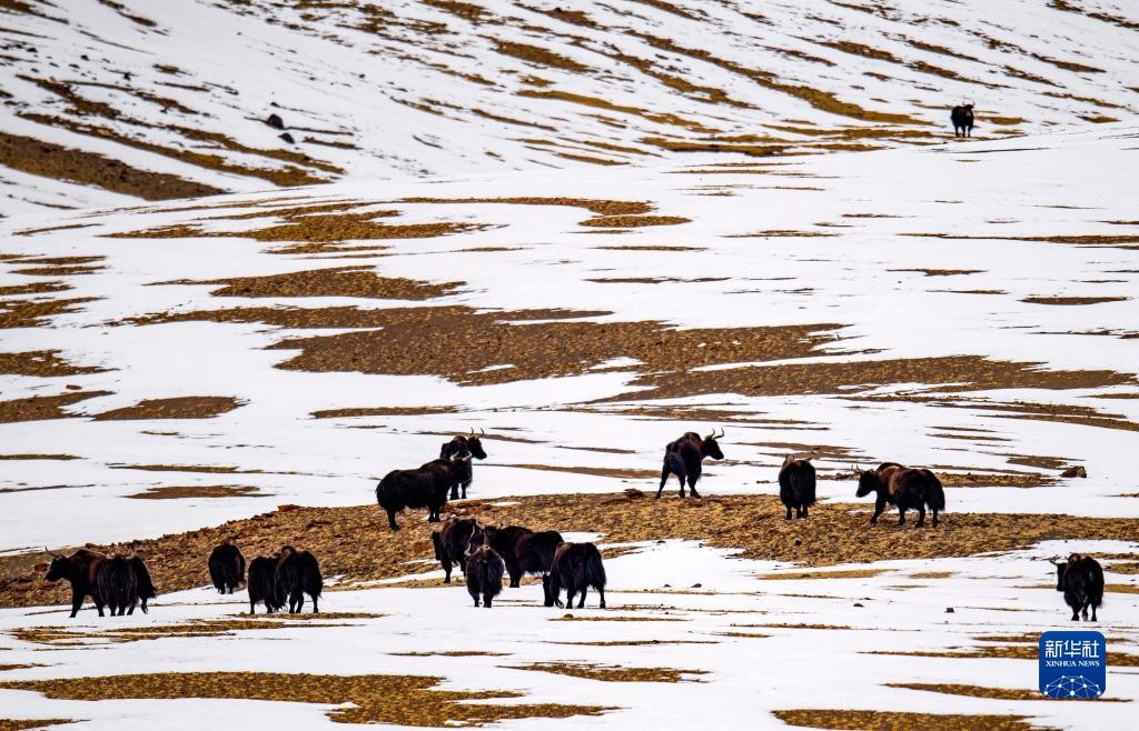这是在羌塘国家级自然保护区那曲市双湖县区域内拍摄到的成群的野牦牛(4月17日摄) 。