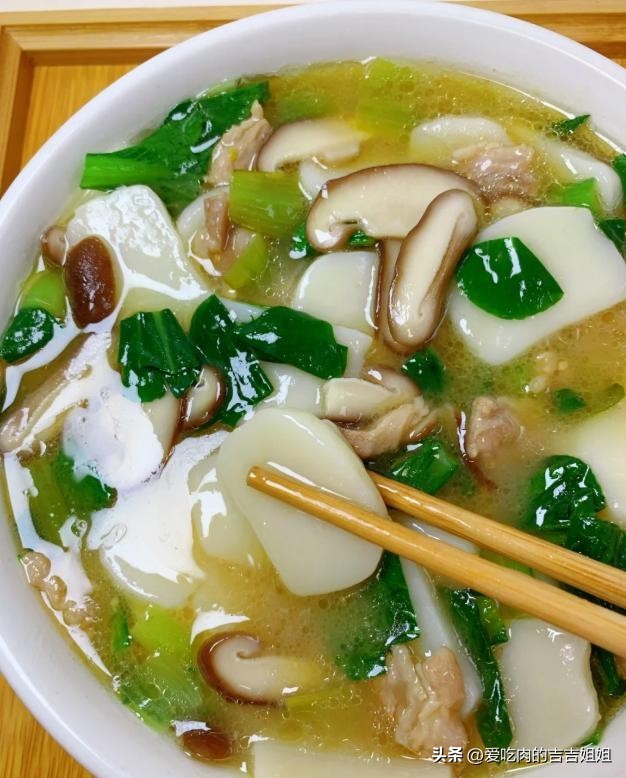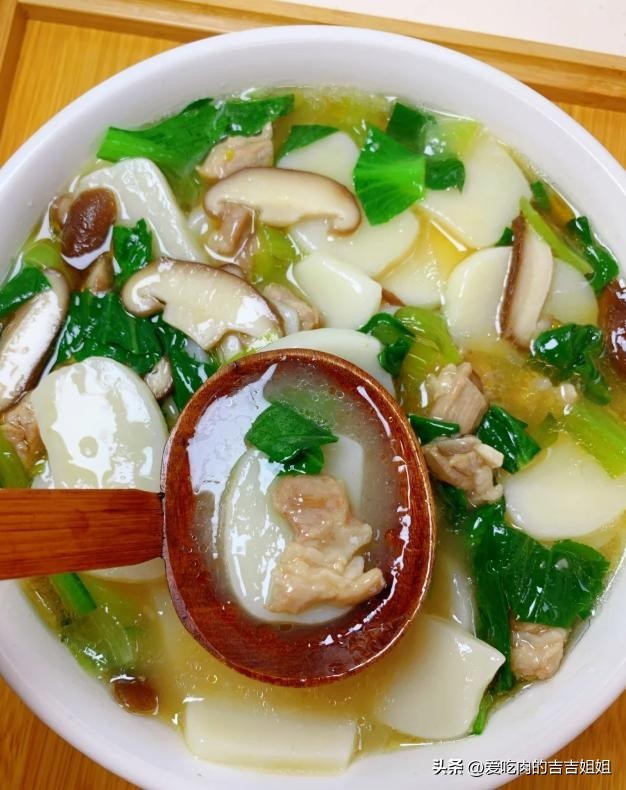 天冷就适合吃点热乎的 早餐来一碗糯叽叽的年糕汤, 清淡暖胃又鲜美!