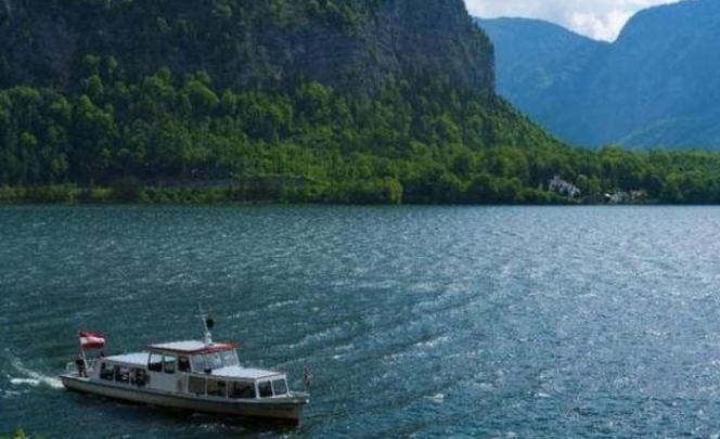 轮船上血红与雪白相间的奥地利国旗,轻松地点缀着哈尔斯塔特的碧水青山。