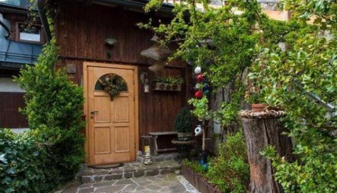 木板房的露台上精心栽种的时令春花,有瓜叶菊、荚蒾绣球、石蜡红、矮牵牛。靠墙的杏树已开始结果;粉色杏花装扮院子的时光一定更是曼妙。