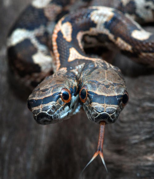 一种罕见的变异蛇——双头蛇,控制头部的基因不稳定,发生了变异
