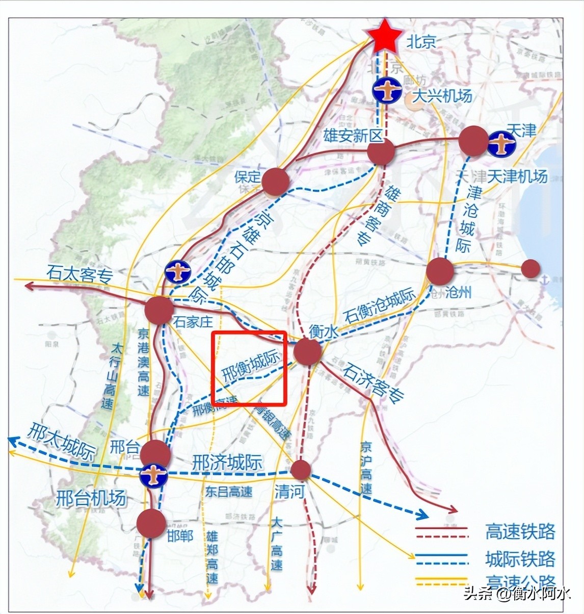 远期谋划的邢衡城际、邯衡城际(个人认为邯衡城际或被石邢邯城际(邯郸至邢台段)+邢衡城际替代)衡潢铁路(邯郸方案是进邯郸东站再到衡水,这个线路想要实现感觉太远了,本文不在赘述),衡水北站可直达邢台、邯郸