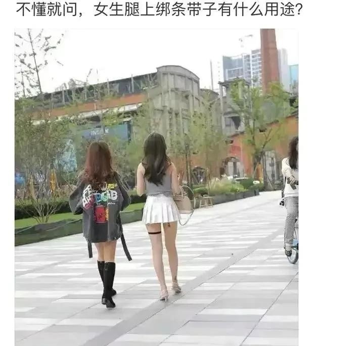 一位女子腿上绑着五彩斑斓的带子,朋友问这是新时尚,她幽默地回答:“这是拴住我男友的措施!”全场哄然大笑。