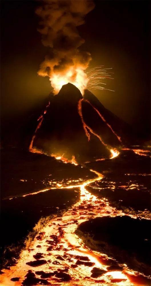 11、火山爆发,尘埃形成了冲天的云烟