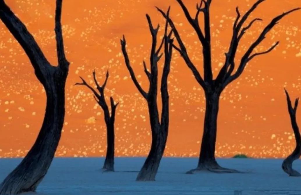 13、这副画看着像是漫画,其实是真实存在的场景。日落之时,太阳光的照射下把树林变成了一幅幅奇幻的场景。