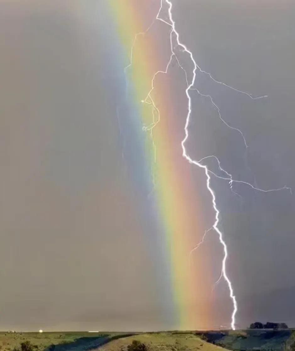 17、彩虹与闪电的双重结合,这个景象实在是太罕见了。