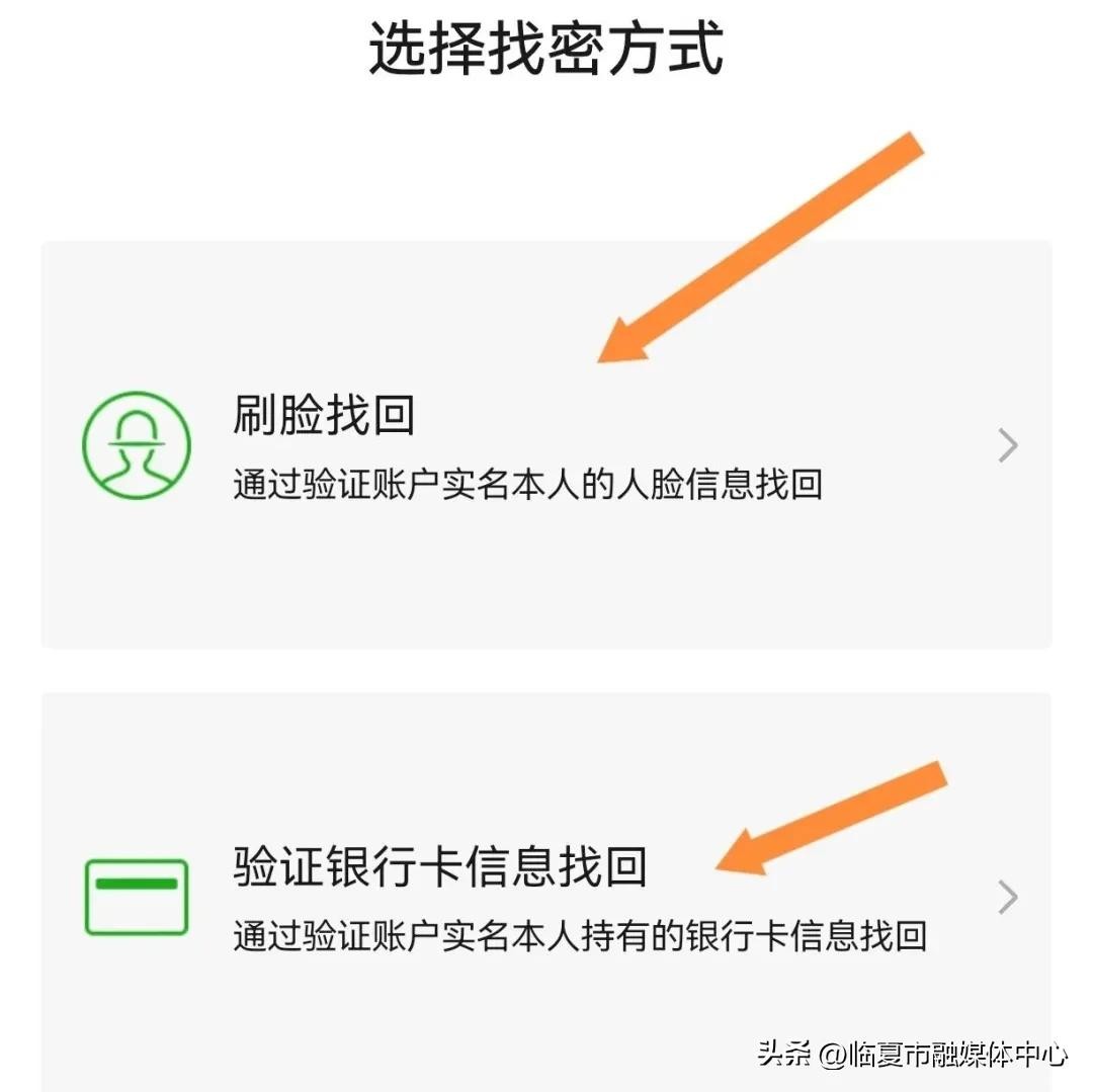 由于微信的活跃用户数量非常庞大,所以为了满足不同人群的需求,提供了两种找回密码的方式,分别是通过验证账户实名本人的人脸信息找回密码以及通过验证账户实名本人持有的银行卡信息找回。
