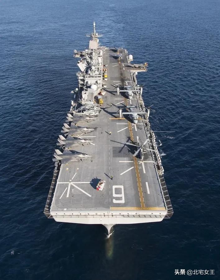 黄蜂级拥有着宽大的直通飞行甲板,配合F-35B垂直起降战斗机上舰,其战斗力轻松超越世界现役绝大部分航母