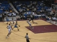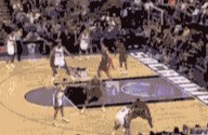 比如接下来这一快攻回合,充分说明了里基戴维斯在当时骑士队内的地位。当时詹姆斯前场1打0,按那时候詹姆斯的性格,必然是暴扣送上,但眼见球队老大哥里基戴维斯也冲了上来,詹姆斯只能乖乖交出球权,成全里基戴维斯完成折叠暴扣。