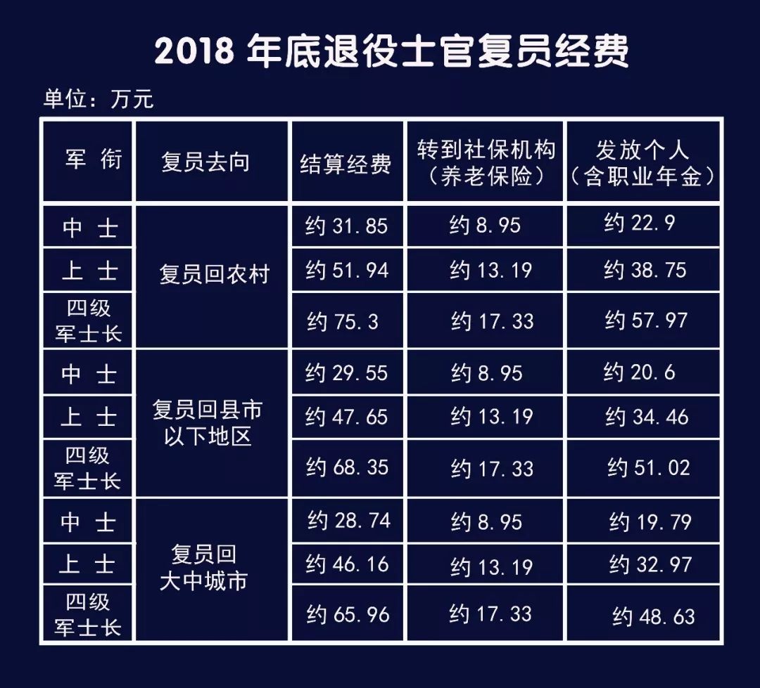 话不多说,先来看看2018年底退役士官有多少退役经费——