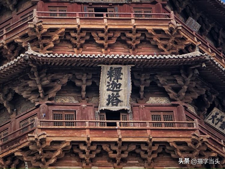 中间的是全塔唯一的一块竖匾,上面题写木塔的大名【释迦塔】,释迦为释迦牟尼的略称,也就是佛祖塔的意思,暗含这里供奉着佛牙舍利之意。