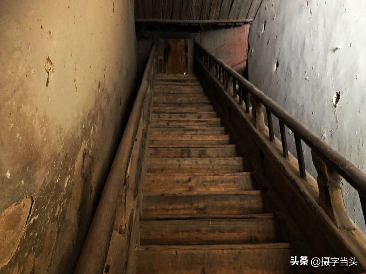 两堵墙筒之间,是人行过道,有十多米长的木梯直通二层。但为了保护珍贵的国宝级古建,不允许上楼参观,所以只能望楼兴叹了。