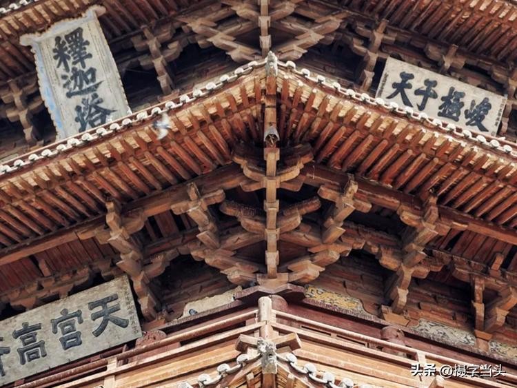 若非亲眼所见,很难想象斗拱样式如此之多,有的如浪花飘向空中,有的如弯月挂在疏桐,一层一层,一簇一簇,如众星拱月般把木塔之巅送进云彩里。