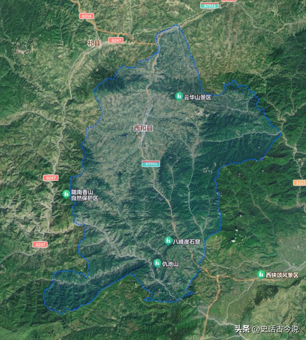 隶属陇南市,下辖16个镇(驻汉源镇)、4个乡,总面积1861平方公里,常住人口34.88万,2022年GDP总量44.41亿元,人均GDP1.27万元。西和县位于陇南市北部、长江流域西汉水上游,辖区西北属梁峁沟壑区地势平缓,东南属岭南山林区地势陡峭,西汉水、漾水河等8条河流贯穿全境,属全国第二大铅锌矿带——西成铅锌矿带,黄金资源较为分散,森林覆盖率41%。与徽县、成县、武都区、礼县、秦州区(天水市)交界。