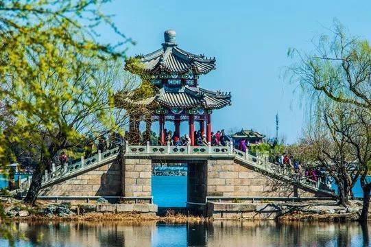 北海公园:位于北京市中心,是中国古代皇家园林之一。北海公园建筑群包括白塔、琼华岛、九龙壁等建筑,是中国古代园林建筑的代表之一。