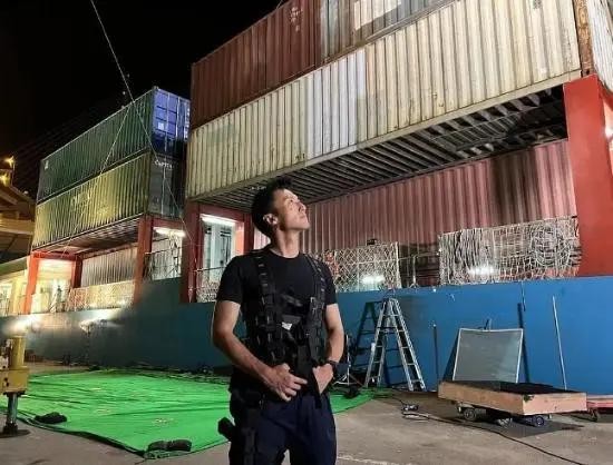 去年拍摄《海关战线》,他又再度在片场上演坠楼的惊险一幕,好在也只是受了轻伤。