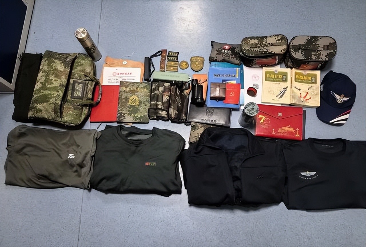 在登记其个人物品的过程中,发现有大量涉军物品,其中,赫然包括“XX集团军XX合成旅”印章,军兵种标志服饰以及《作战计算指南》、《作战标图指南》、《标准电码本》等涉密书籍,其自称现役军官。