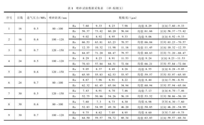喷砂主要参数对工件表面的影响