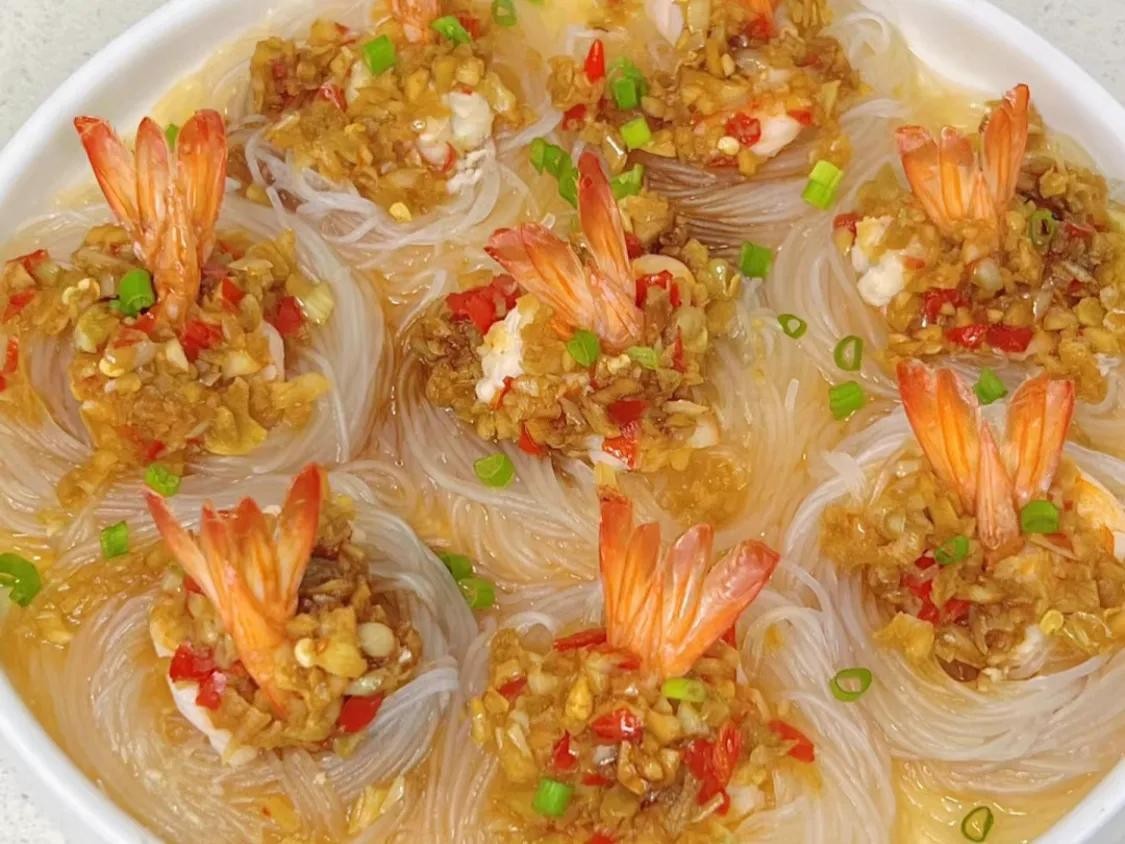 做法:粉条要泡好摆成一圈圈的样子放在盘子里,把小龙虾放在粉条中间。蒜蓉、小米辣放在热好的油里调香后,放生抽、蚝油和白糖,酱汁淋在小龙虾和粉条上,最后把盘子上锅蒸熟食材取出就可以食用了。