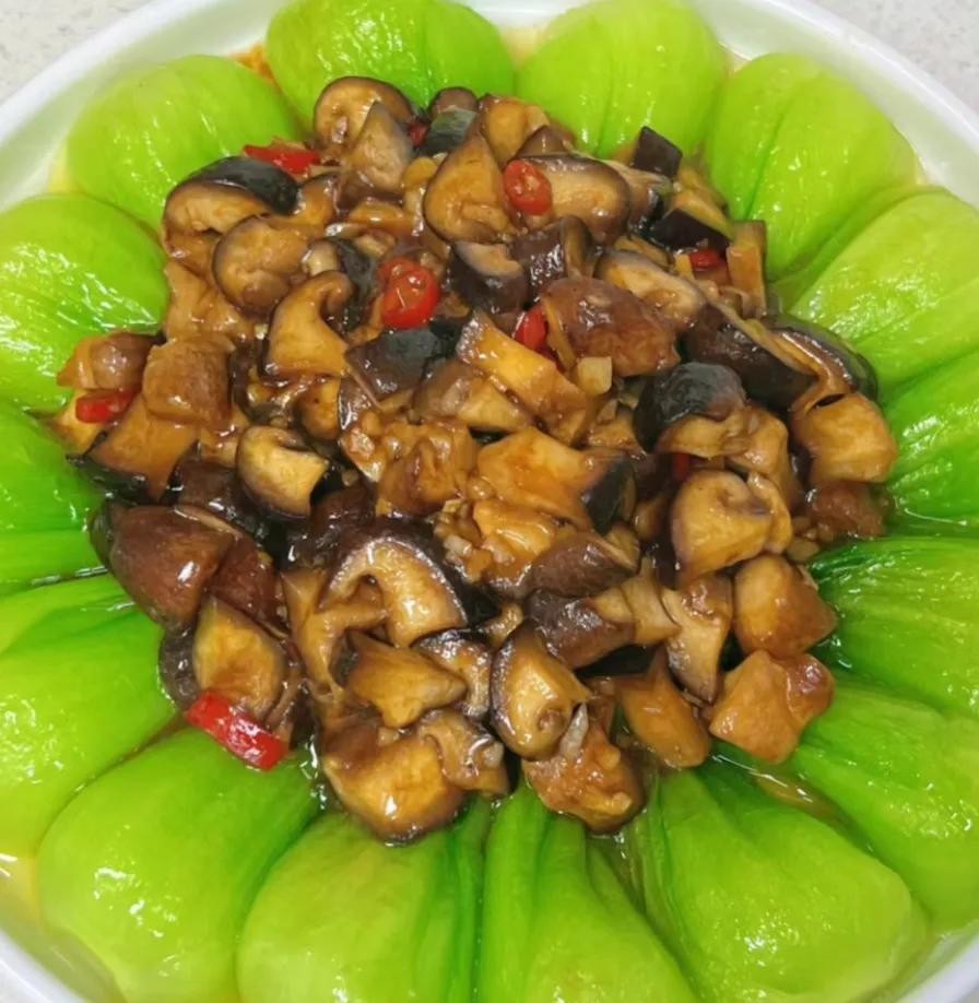 做法:香菇切成丁,油菜从中间切开,锅里放油,把油菜炒熟后放盐出锅摆盘,锅里烧热油,放入蒜末和辣椒炒香后加香菇丁,放生抽和盐和一碗水,煮5分钟后加淀粉,熟透后起锅放在油菜上,就算做好了。