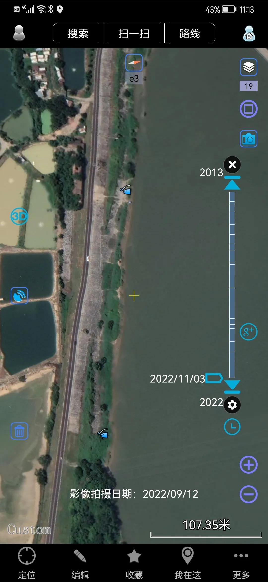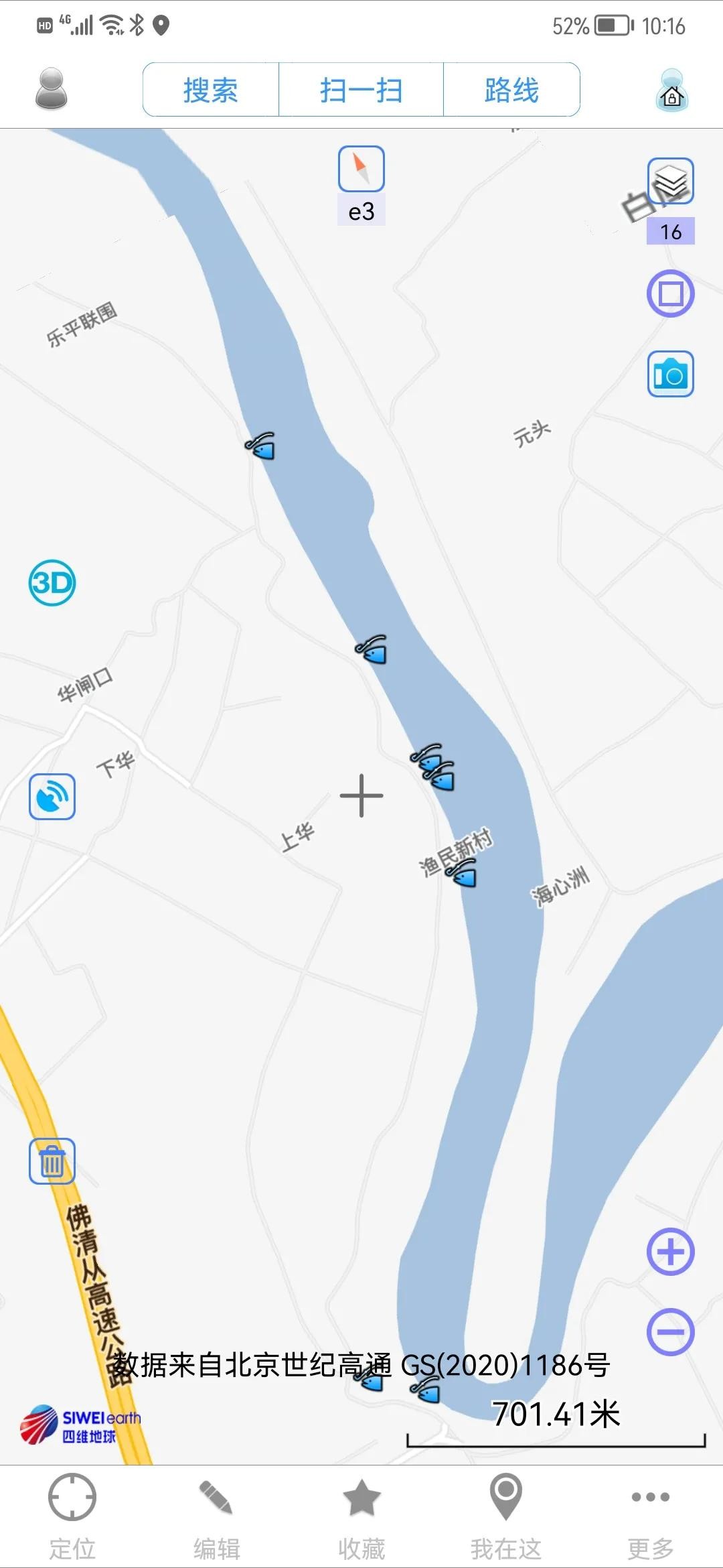4、5、6号钓位比较相近,下图中最下方的蓝色标记点即是三号钓位,这三个钓位位于三水区乐平镇渔民新村,上华附近,可依图比对具体位置!