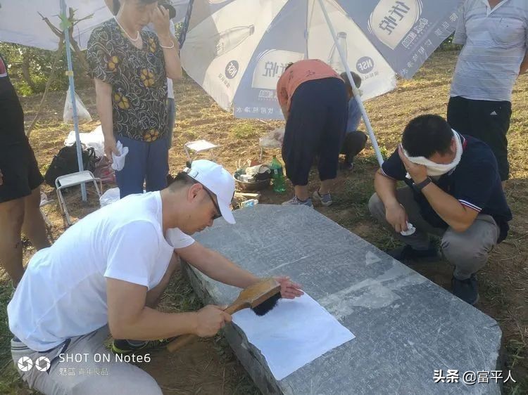 侧记:德教碑由于年久加之文革破坏,残缺不全,弃之李家村南耕地数十年。2019年7月28日,李党两族晚辈李谦增、党赛利、党雷等,为探究先祖遗风,传承家族文化,专门从西安请来考古专家,精心制作石碑拓片,使碑文重显光日。