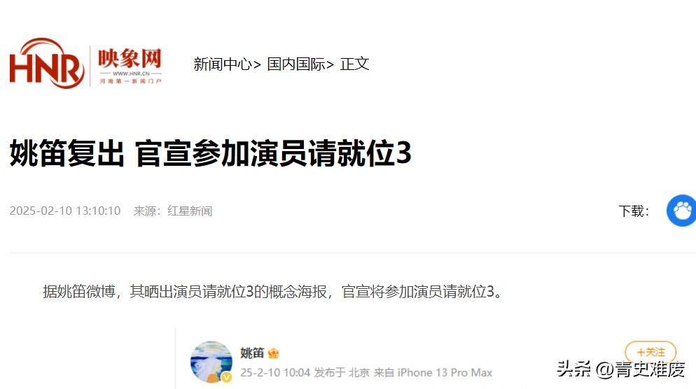 而在2025年2月10日,姚笛在社交媒体上官宣复出,将参与《演员请就位3》的录制,这一消息可是炸了锅,要知道姚笛之前和文章的事情已经闹得人尽皆知,而姚笛也坐实了“第三者”的名号。