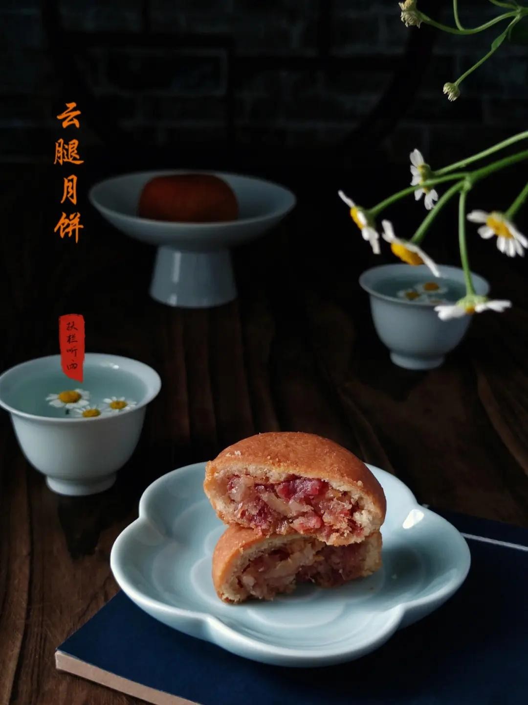 云腿月饼: 结合了云南火腿的特色月饼,咸甜适中,馅料丰富,口感层次分明,是昆明独有的美食。