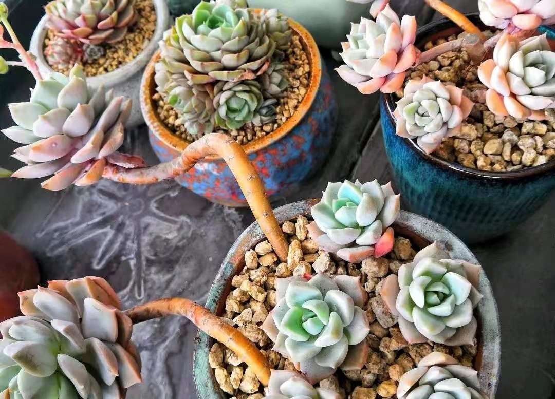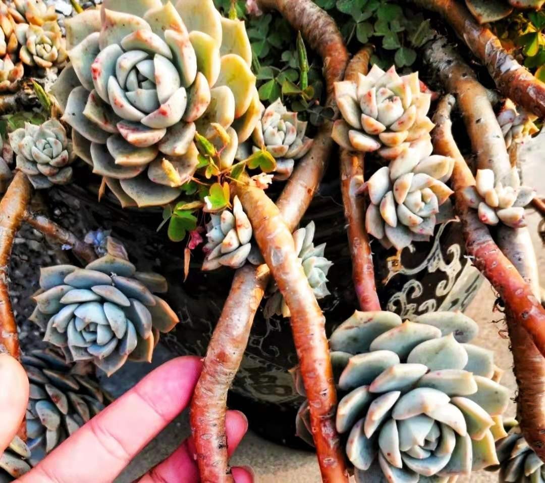 浇水少,杆子才能控成老桩,叶片才肥胖,莲座看起来才会紧凑。如果控制不住浇水,很容易黑腐空盆。它属于越控养越皮实的类型,越虐越好看。