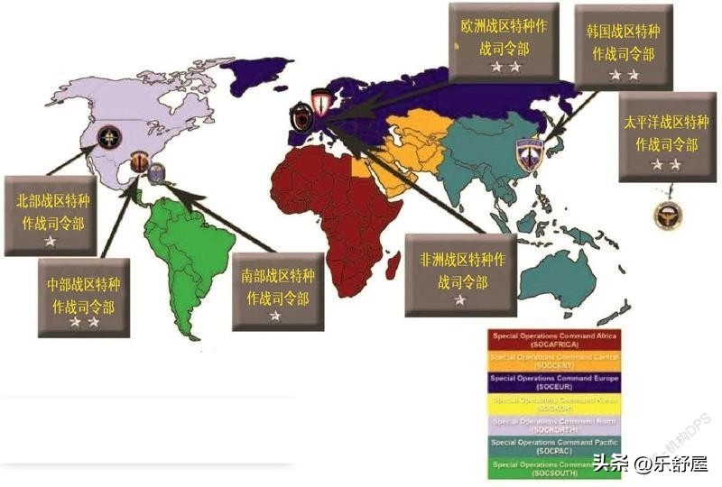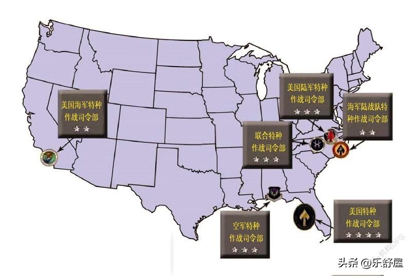 军种特种作战司令部分布图,右下为美国特种作战司令部
