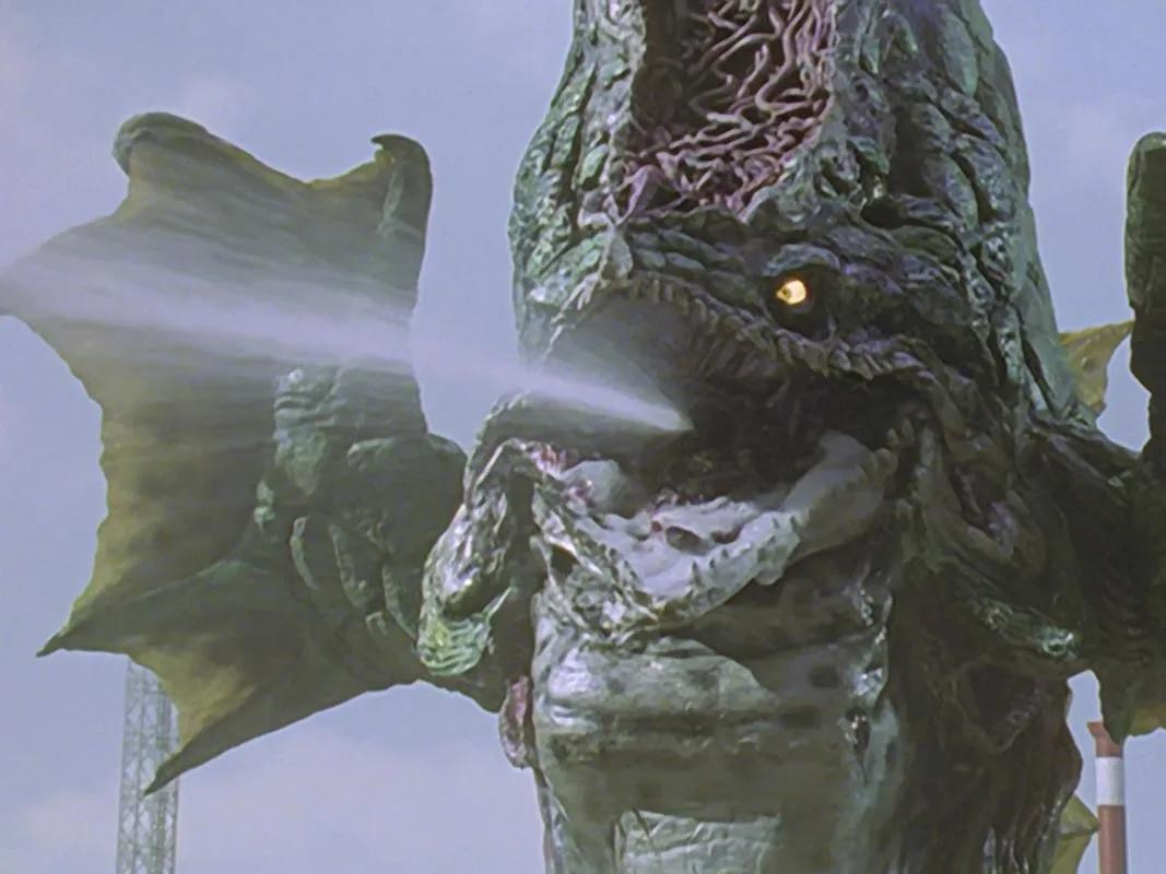 在西太平洋R海域的石油厂附近出现的怪兽,被TPC代号为雷伊洛斯。原本是栖息在海中的普通生物,但因受到接二连三的地下核试验的放射能影响而变成怪兽。因为吸收了放射能,所以细胞中也含有放射能。在西太平洋R海域出现,袭击海上钻井平台,受到了出击的GUTS战斗机的激光攻击后一度消失在水中,被出击的胜利队战斗机的激光攻击后一度消失在水中。