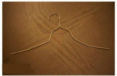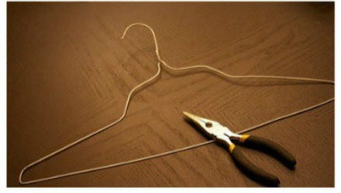 Step 2:如图,把衣架最下面的横边用镊子剪掉。
